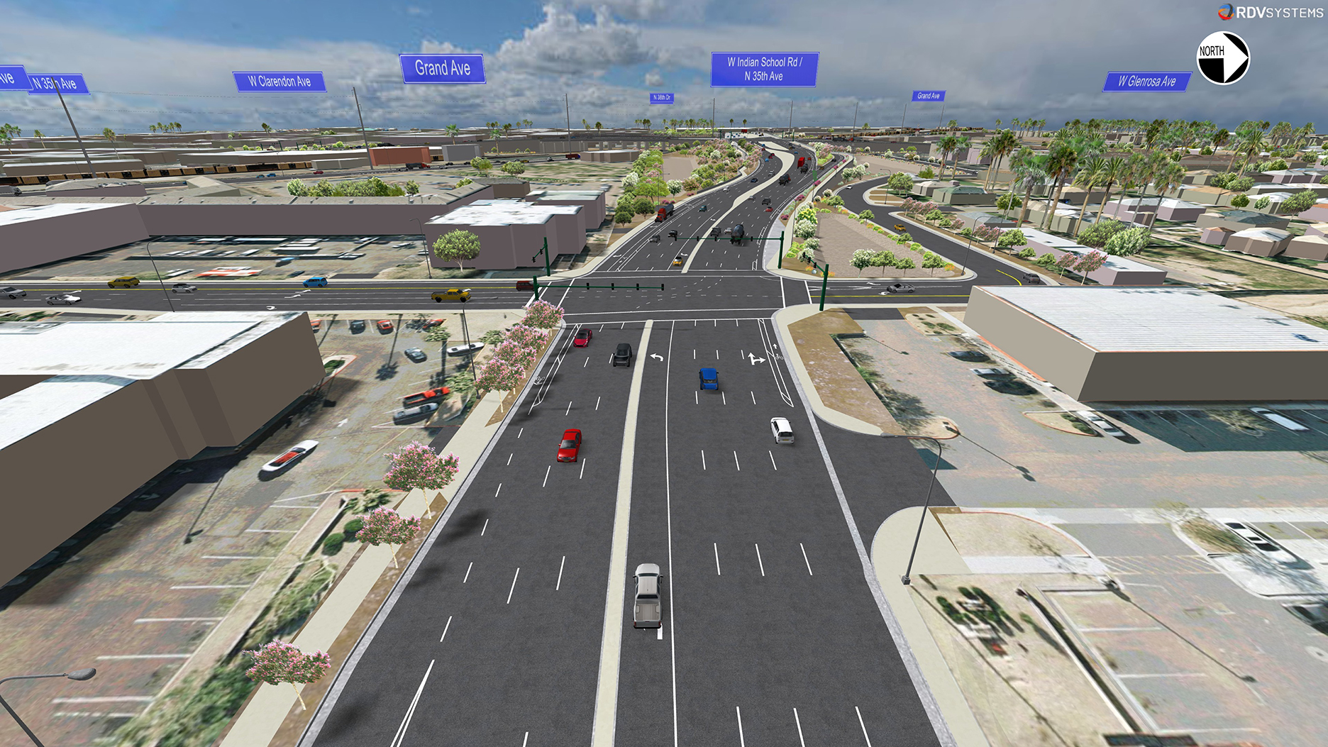 - Indian School Road would be shifted to the north and would be elevated to create a new intersection with 35th Avenue.