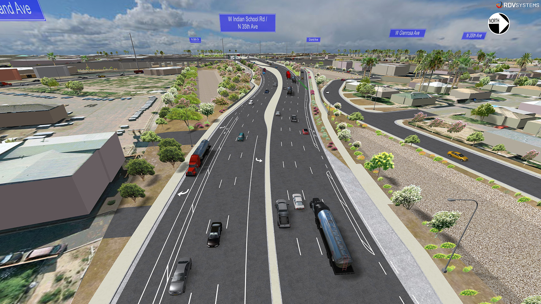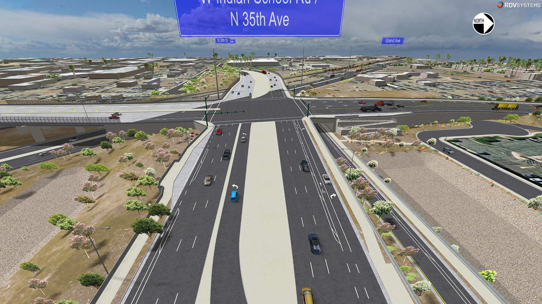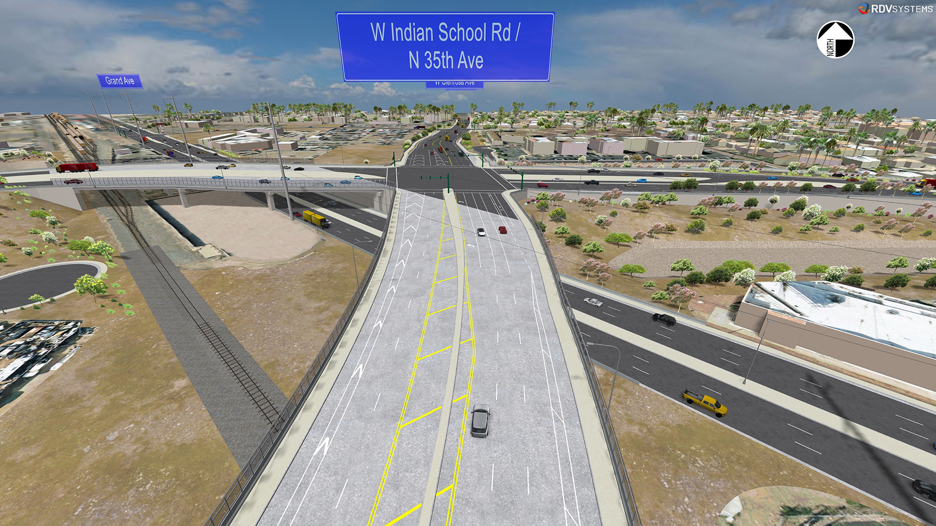 - Both 35th Avenue and Indian School Road would pass over Grand Avenue and the BNSF Railway.