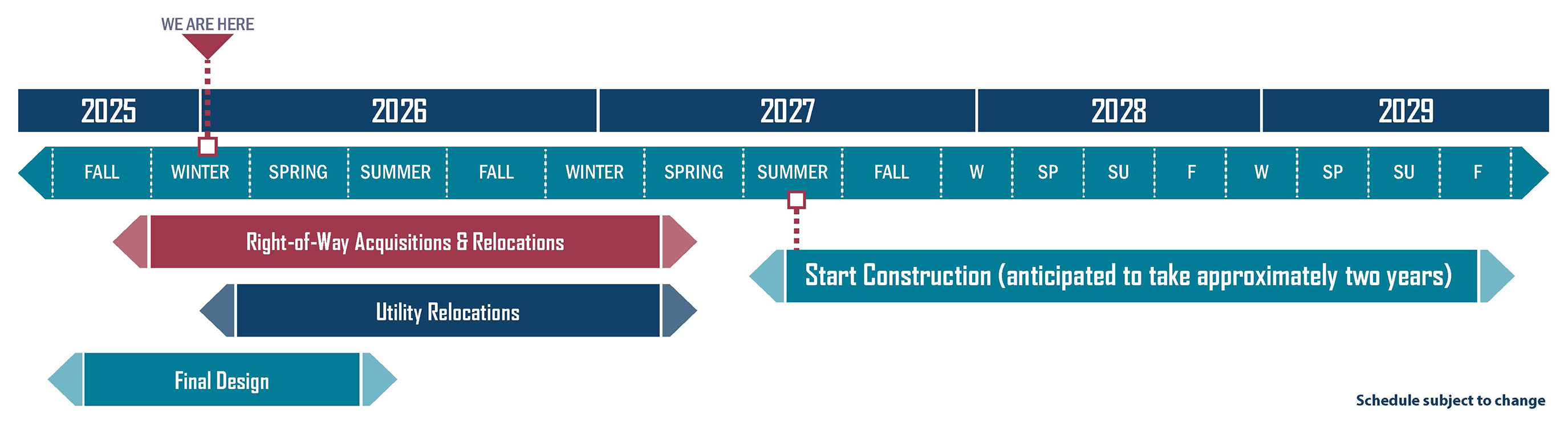- Start Construction - anticipated to last approximately two years starting in Summer 2027 Schedule subject to change