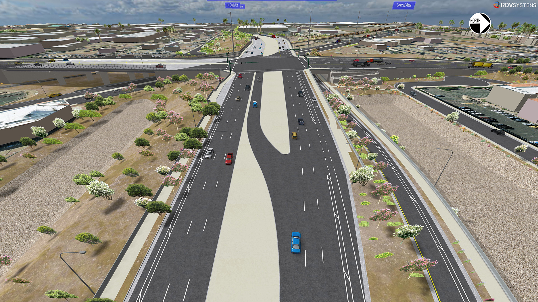 The project will raise 35th Avenue to create a new elevated intersection with Indian School Road above Grand Avenue, which will improve traffic operations and safety and reduce vehicle/train conflicts. The project also includes improvements to sidewalks and bicycle facilities and will modify other roadways in the project area to provide local access.